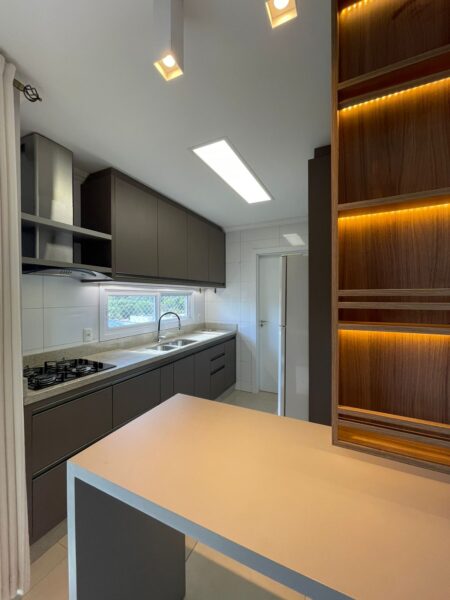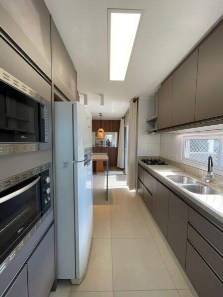 - Totalmente mobiliado, voltado para a frente, com uma sacada fechada perfeita para bons momentos e equipada com churrasqueira.