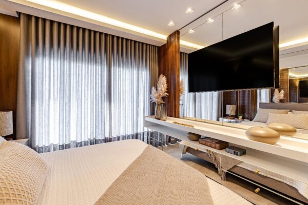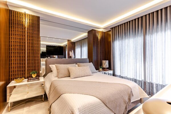 - Este imóvel de alto padrão oferece 3 suítes exclusivas, sendo uma suíte master com sacada, banheira de hidromassagem e dois amplos closets para todo o conforto que você merece.