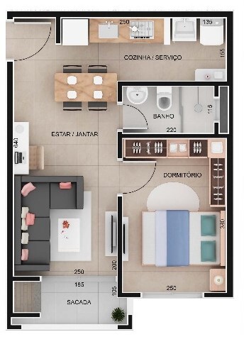 A802 – Apartamento 1 dormitório