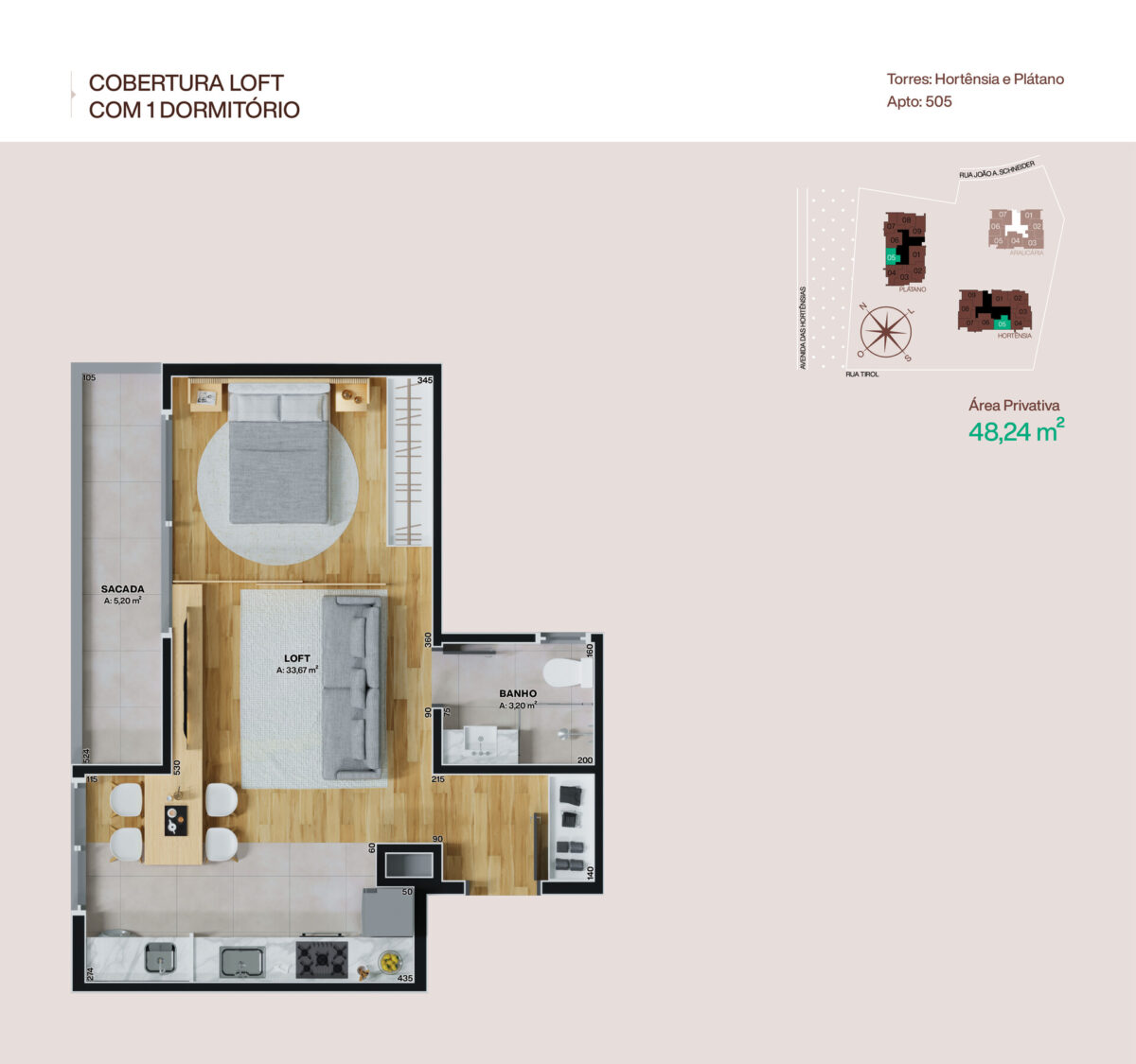 • Cobertura Loft 505, situada na Torre Hortênsia