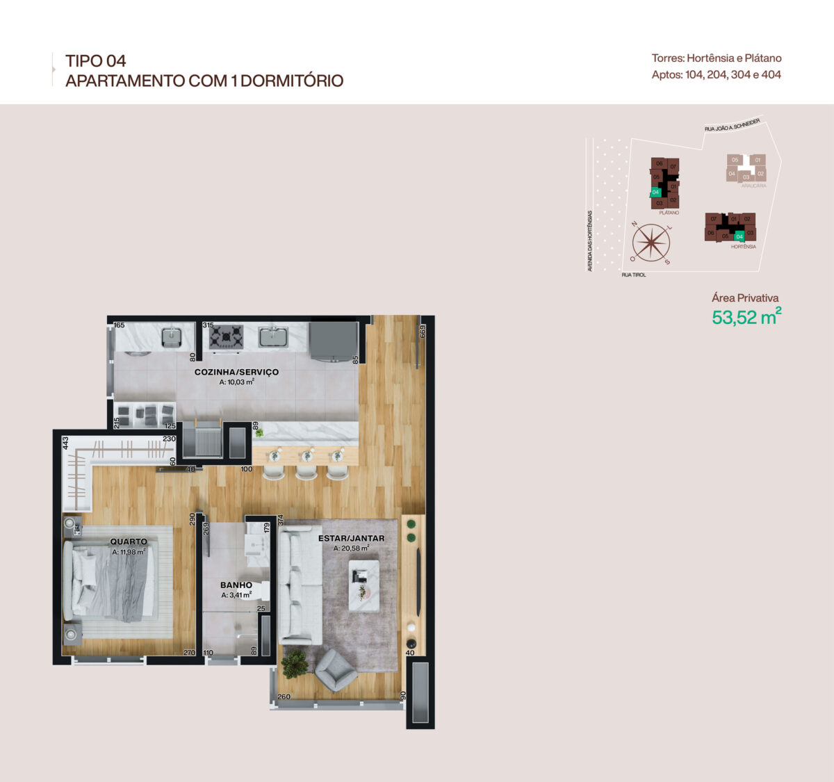 - Apartamento 104, situado na Torre Plátano
