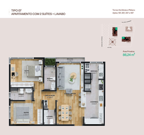 - Apartamento 207, situado na Torre Plátano