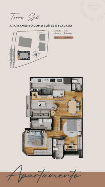 - Apartamento 308, situado na Torre Sul