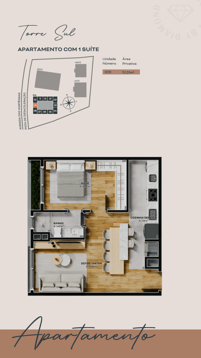 - Apartamento 309, situado na Torre Sul