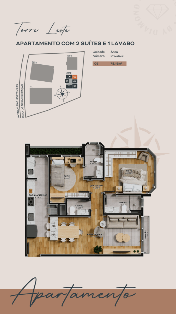 - Apartamento 05, situado na Torre Leste