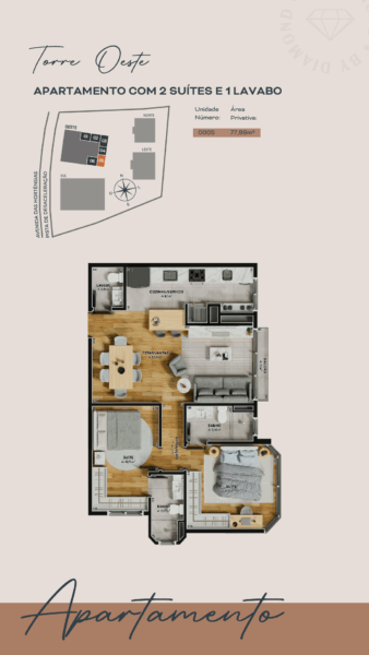 - Apartamento 0005, situado na Torre Oeste