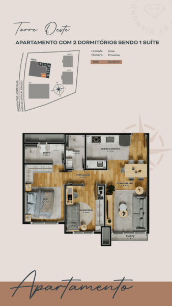- Apartamento 206, situado na Torre Oeste