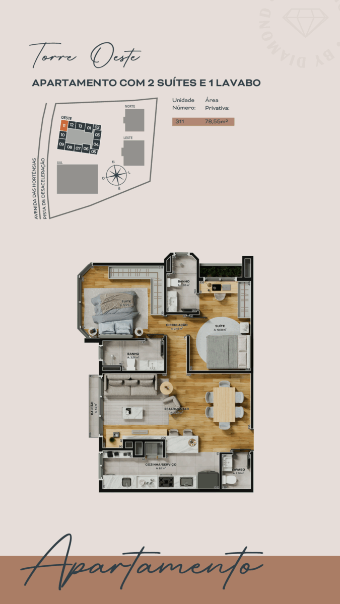 - Apartamento 311, situado na Torre Oeste