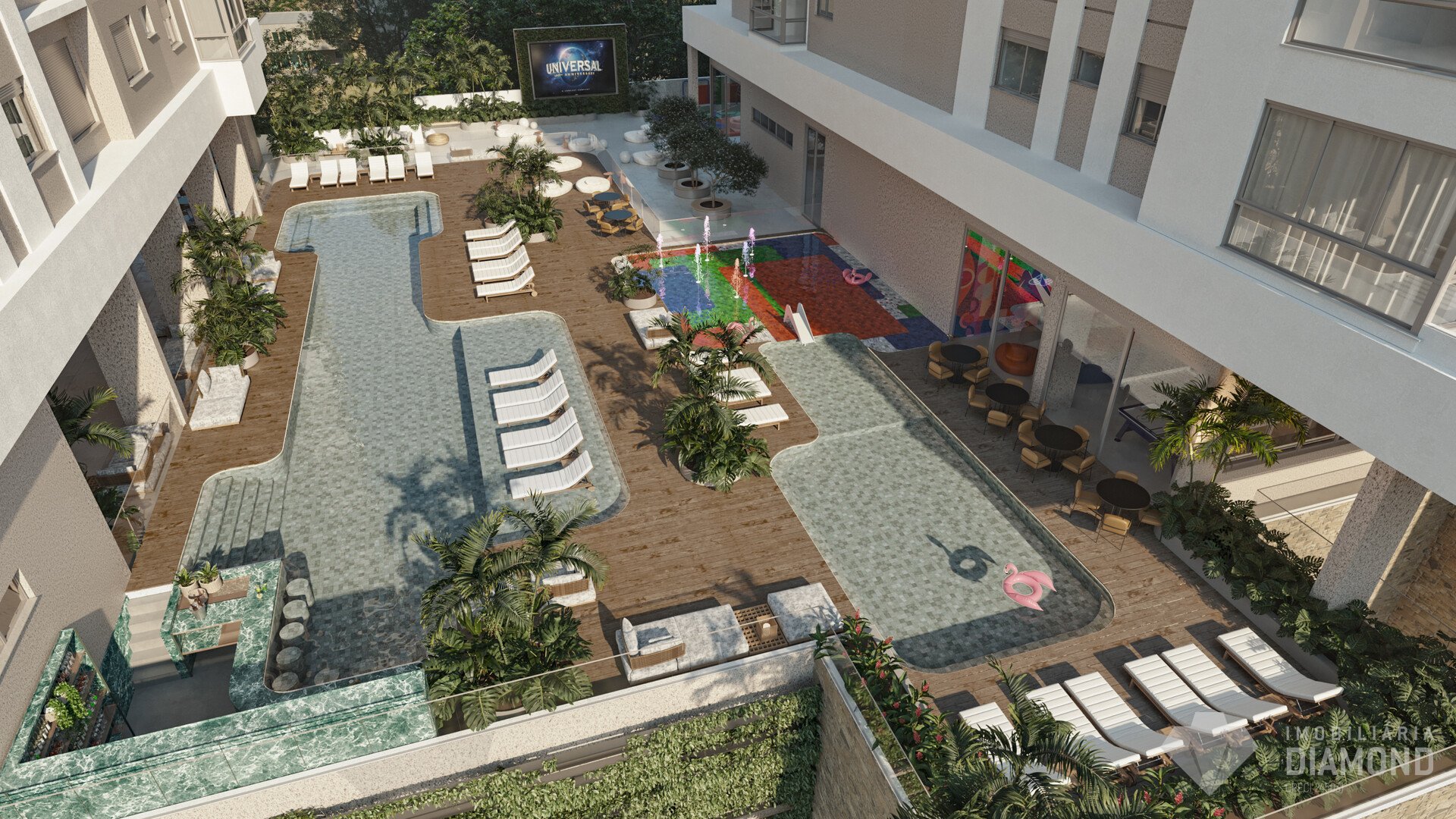 - Piscina com prainha e bar molhado