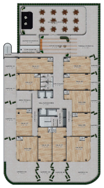 - Mais de 20 salas comerciais com garden;