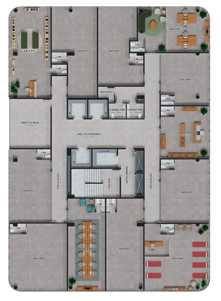 • Com lajes corporativas amplas e modulares;
