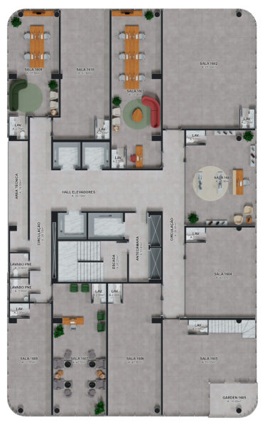 - Com lajes corporativas amplas e modulares;