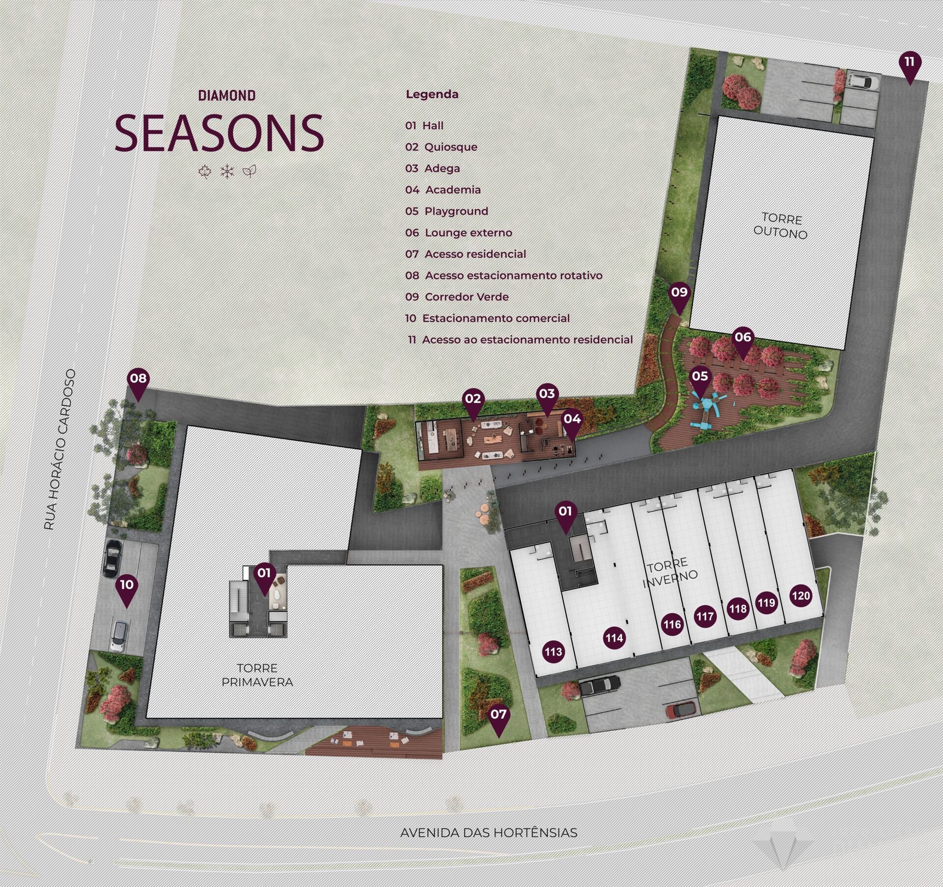 • Localização privilegiada na região central, de frente para a Avenida das Hortênsias