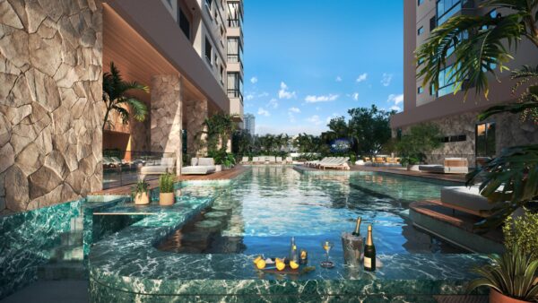 - Piscina com prainha e bar molhado