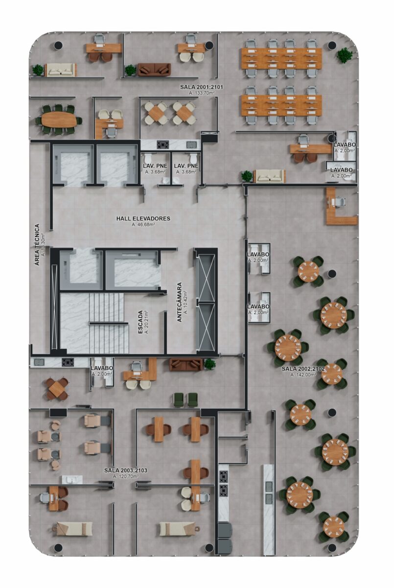 - Com lajes corporativas amplas e modulares;