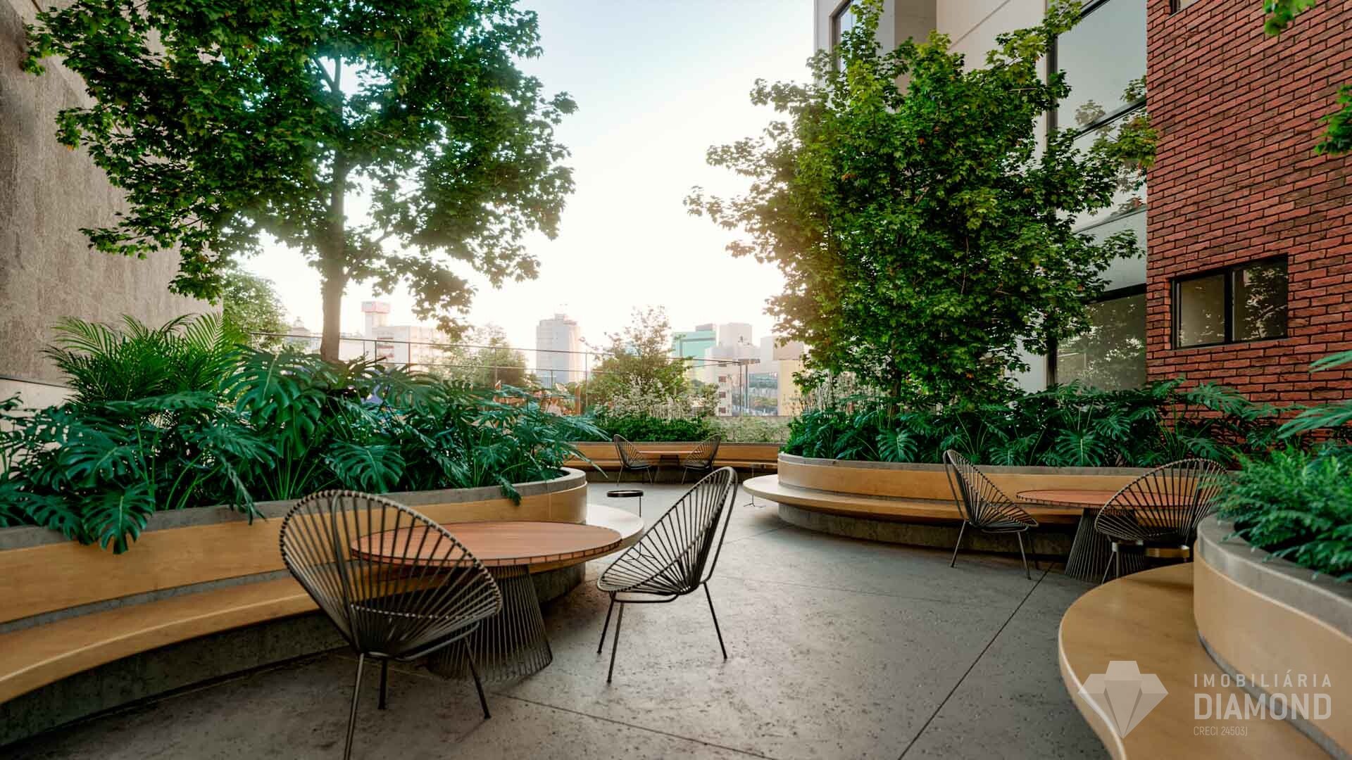 • Praça com paisagismo