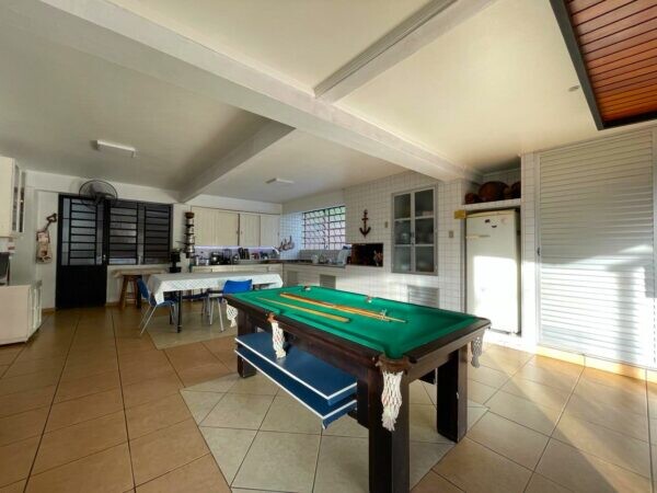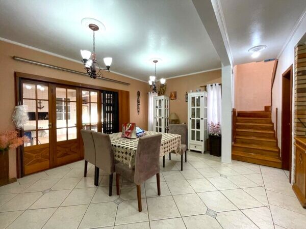 A sala de estar e jantar, decorada com bom gosto, oferece um local perfeito para reunir amigos e familiares, criando momentos especiais de convívio. Grandes janelas e portas de vidro deslizantes conectam esses ambientes ao exterior, permitindo a entrada abundante de luz natural e criando uma conexão harmoniosa entre os espaços internos e externos.