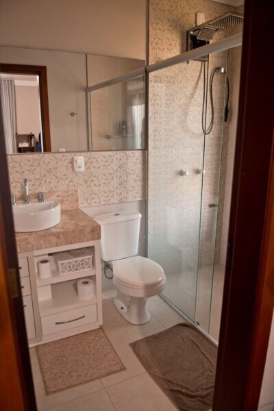 - Suite 1 mobiliada com armário embutido, com banheiro “americano”
