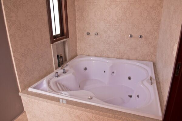 - Master Suite 3 com: varanda, móveis sob medida, cama king size, walk-in closet espaçoso e com móveis sob medida) e hidromassagem para 3 pessoas