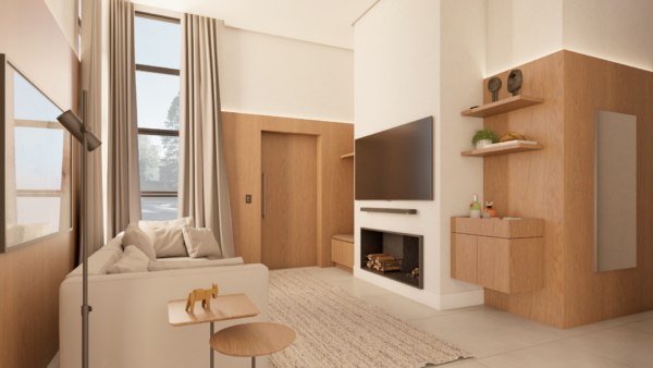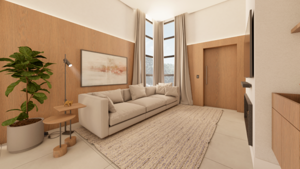 - Pé direito elevado na área social.