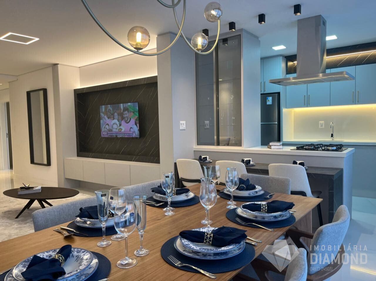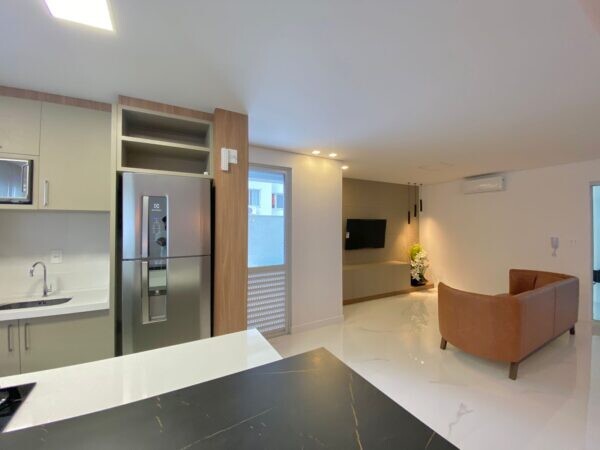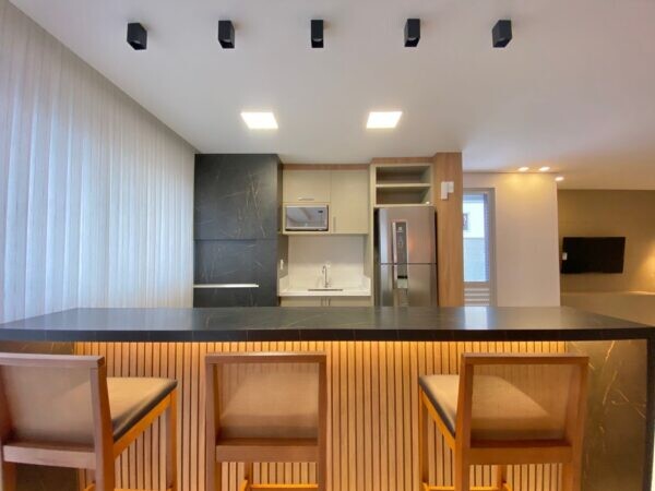 • Apartamento com 3 suítes, churrasqueira à carvão integrada co sacada, sala de estar e jantar, lavabo, cozinha, área de serviço e duas vagas ( com opção de compra de mais).