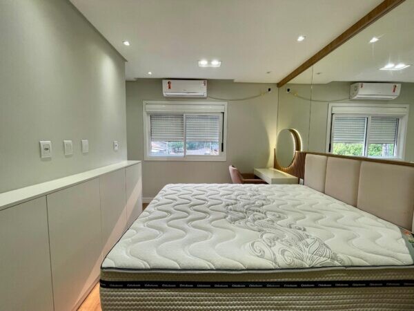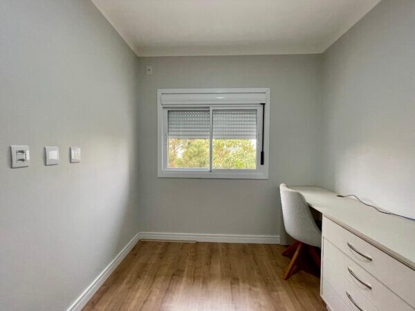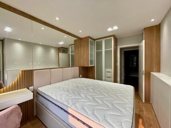 - O imóvel é revestido com piso porcelanato nas áreas comuns, oferecendo durabilidade e sofisticação, enquanto os dormitórios possuem piso laminado, que une conforto e estilo.