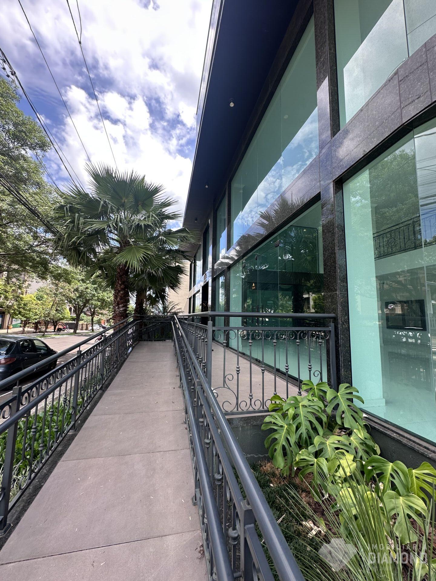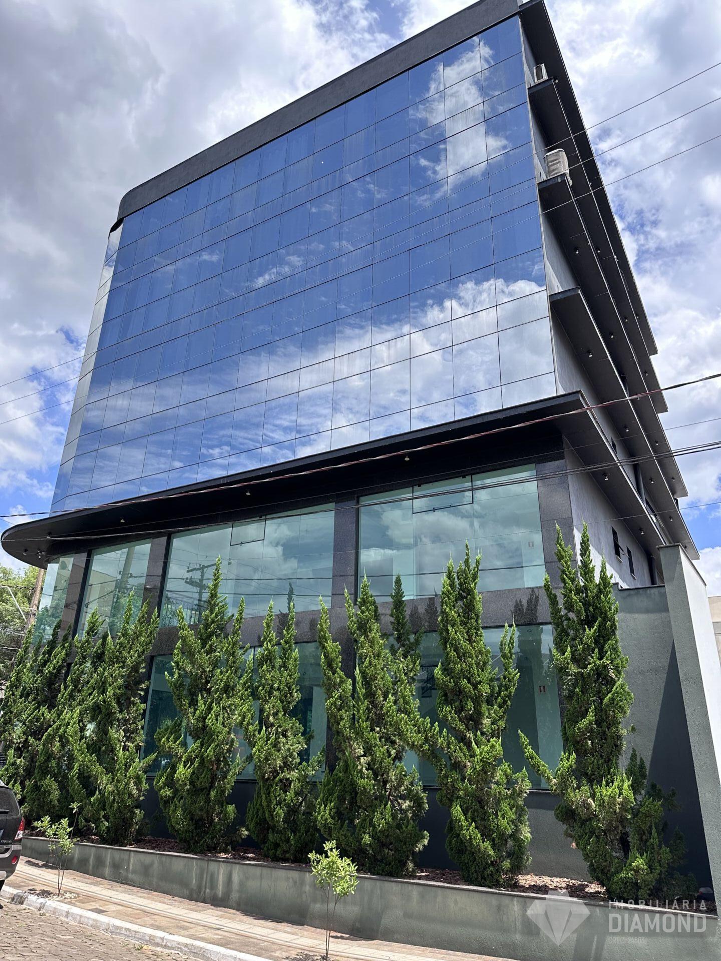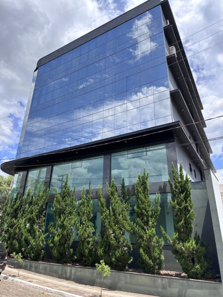 • Fachada do prédio todo em vidro, oferecendo vista e iluminação natural;