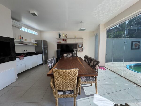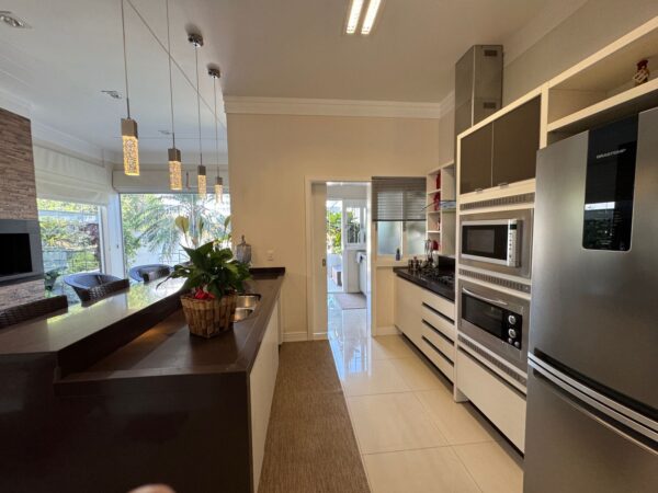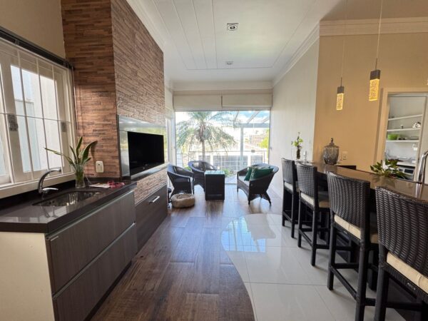 - Cozinha com área gourmet com churrasqueira rotativa.