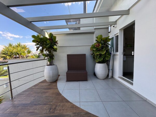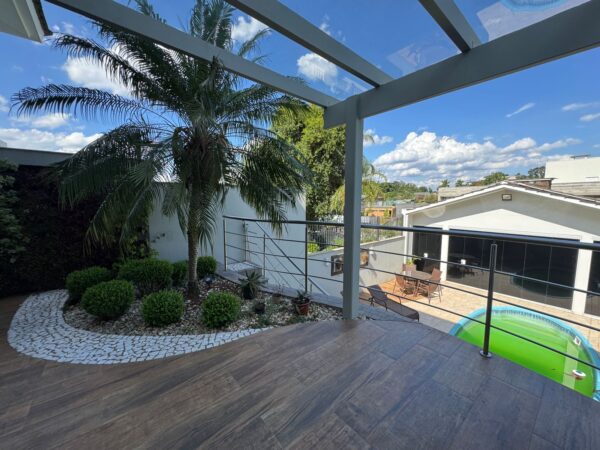 - Pergolado de concreto com área descanso.