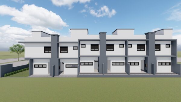 A área social foi projetada para oferecer integração e aconchego, unindo sala de estar e jantar em um espaço amplo e bem iluminado. A cozinha funcional se conecta à área externa, onde uma churrasqueira proporciona momentos de lazer entre amigos e família. Além disso, o sobrado conta com lavabo no térreo, banheiro social no andar superior e uma bela sacada, perfeita para relaxar e apreciar a vista.