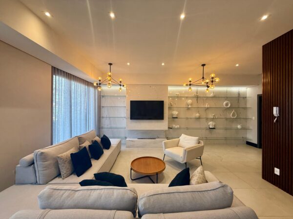 - Ficam móveis projetados e luminárias