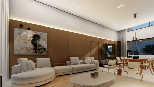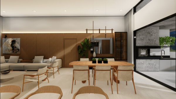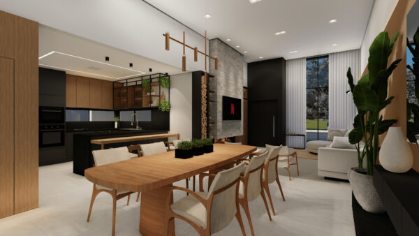 Esta casa foi projetada para oferecer uma experiência de viver exclusiva e refinada. São 3 suítes cuidadosamente distribuídas, com ambientes integrados que valorizam a convivência: sala de estar e jantar em um único espaço fluido e acolhedor, aquecido por uma charmosa lareira, perfeita para os dias mais aconchegantes.