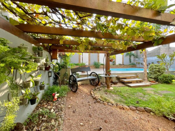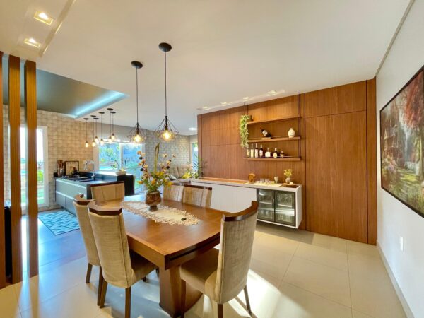 A cozinha planejada e um espaço gourmet equipado com churrasqueira, transforma momentos comuns em celebrações memoráveis. A piscina e o lindo jardim nos fundos ampliam as opções de lazer, enquanto o escritório oferece o espaço ideal para produtividade e concentração.
