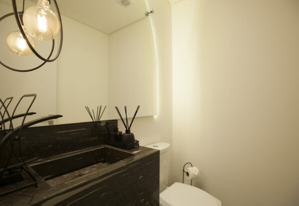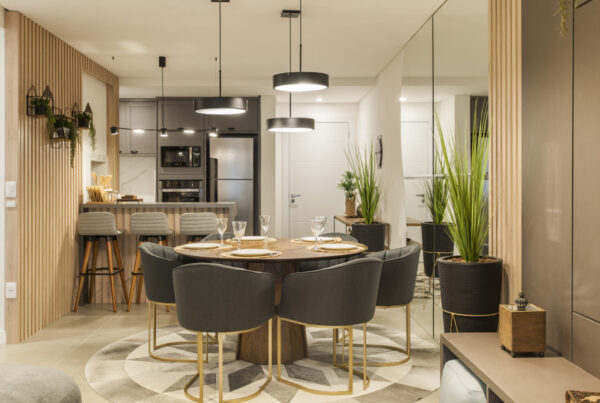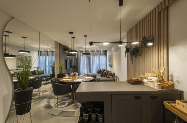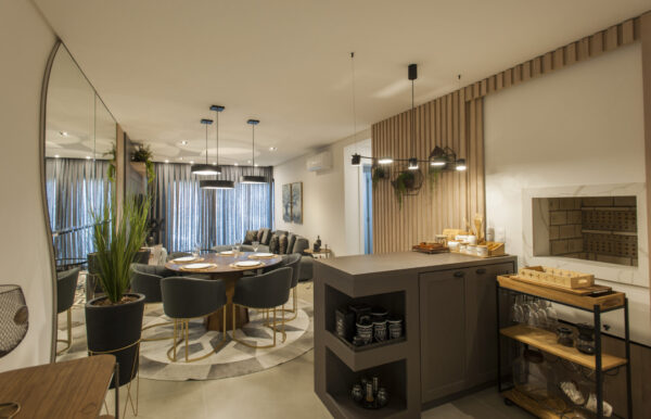 Um lugar fluído, gostoso de estar… novo, bem decorado, cores modernas.