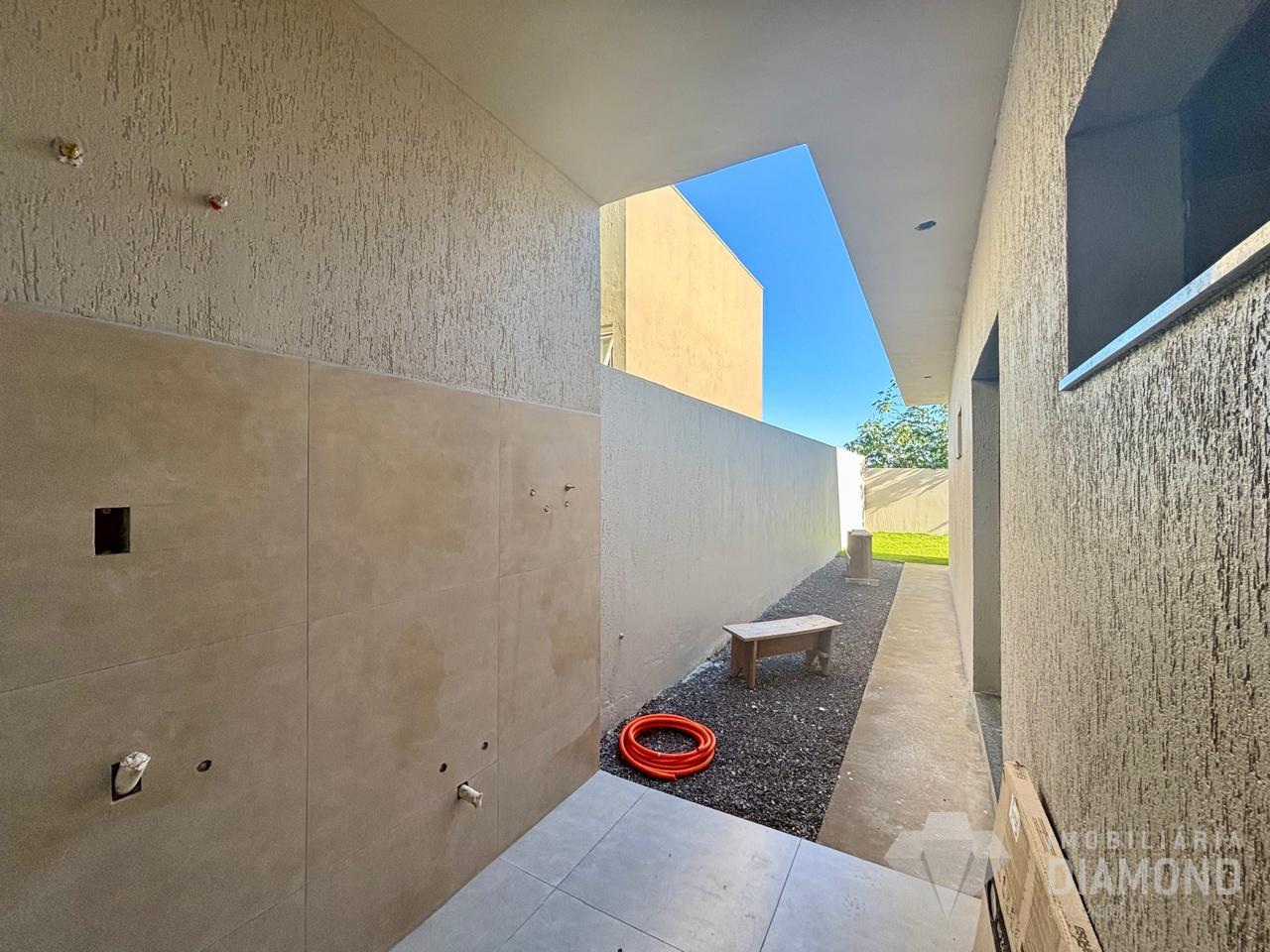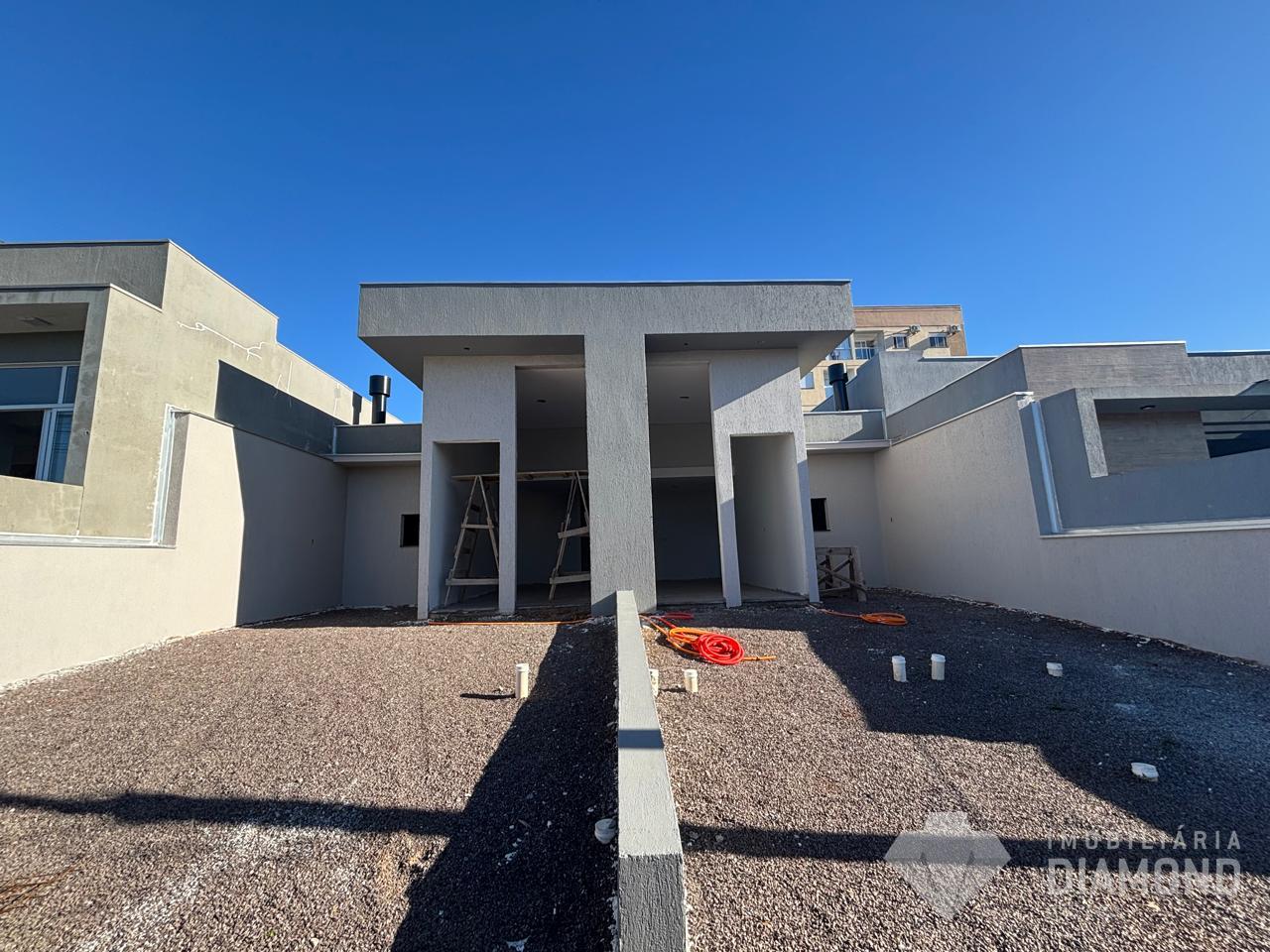 Ótima casa geminada com 82m², projetada para oferecer conforto, estilo e praticidade em cada detalhe. O imóvel conta com dois dormitórios, sendo uma suíte, sala de estar com pé-direito duplo que proporciona amplitude e sofisticação, além de receber o sol da manhã que garante luminosidade natural aos ambientes. Os quartos possuem porta-janelas que integram o espaço interno ao externo, e o amplo pátio nos fundos é ideal para momentos de lazer ou até mesmo para a construção de um espaço gourmet. O acabamento é de alto padrão, com piso laminado nos dormitórios, porcelanato no restante da casa, teto rebaixado em gesso e paredes em massa fina. As aberturas externas em alumínio preto conferem modernidade e durabilidade, enquanto a espera para aquecimento solar ou a gás em todos os pontos de água garante ainda mais comodidade. Uma casa pensada para oferecer qualidade de vida, pronta para receber você e sua família.
