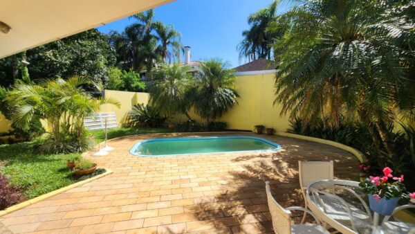 Projetada para quem adora celebrar a vida, esta casa é o cenário ideal para receber amigos e familiares. A área de lazer é o grande destaque, com uma piscina convidativa e um espaço gourmet completo para seus eventos. O pátio, na frente e nos fundos, amplia ainda mais as possibilidades de convivência. Internamente, a residência oferece 3 dormitórios, sendo uma suíte com sacada privativa, além de dois banheiros sociais e um lavabo. Com sala de estar, cozinha, escritório, lavanderia e garagem, este é um lar que une uma vida social agitada com o máximo de conforto.
