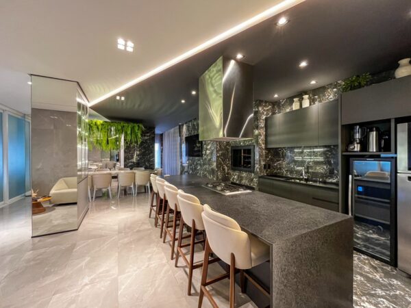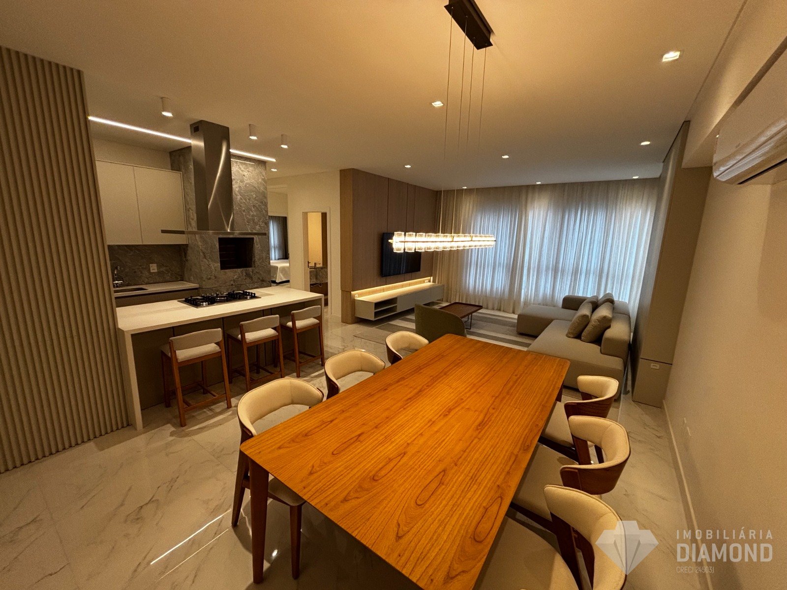 • Living integrado à cozinha