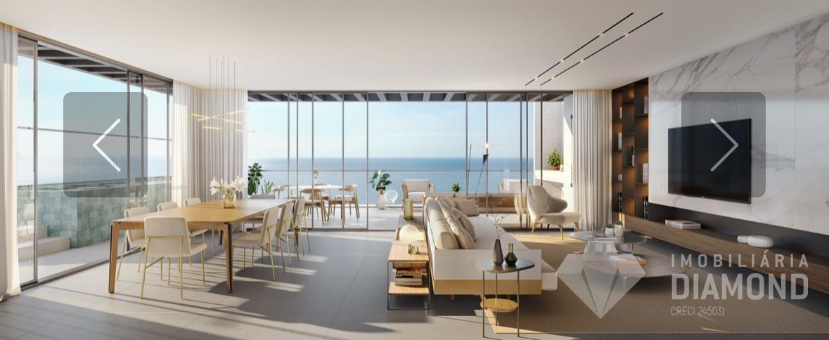 Apartamento localizado de frente para o mar na Praia Brava, com 282m², 4 suítes, 3 vagas, sacada de frente para o mar com churrasqueira à carvão, sala para dois ambientes, cozinha, área de serviço.