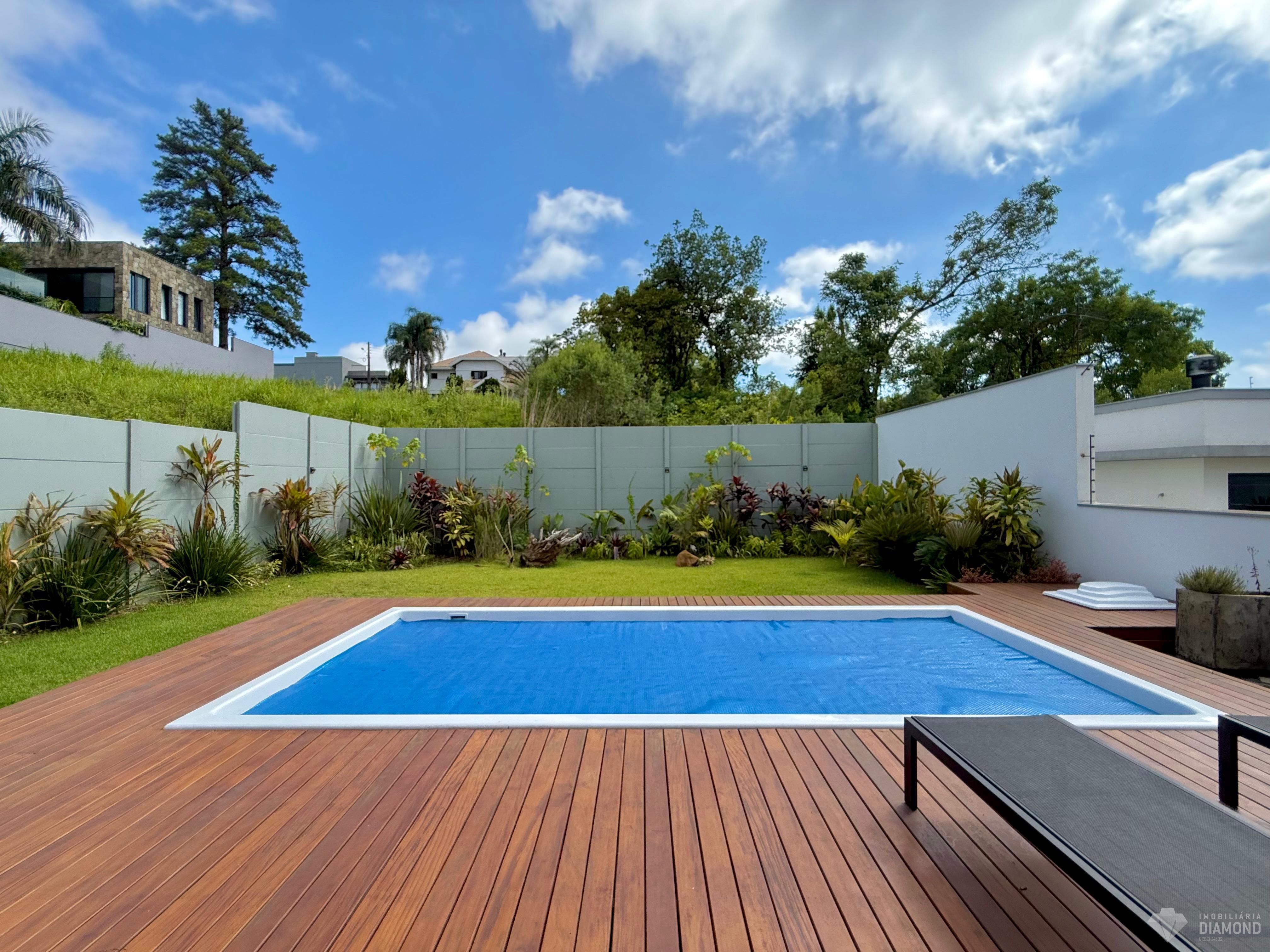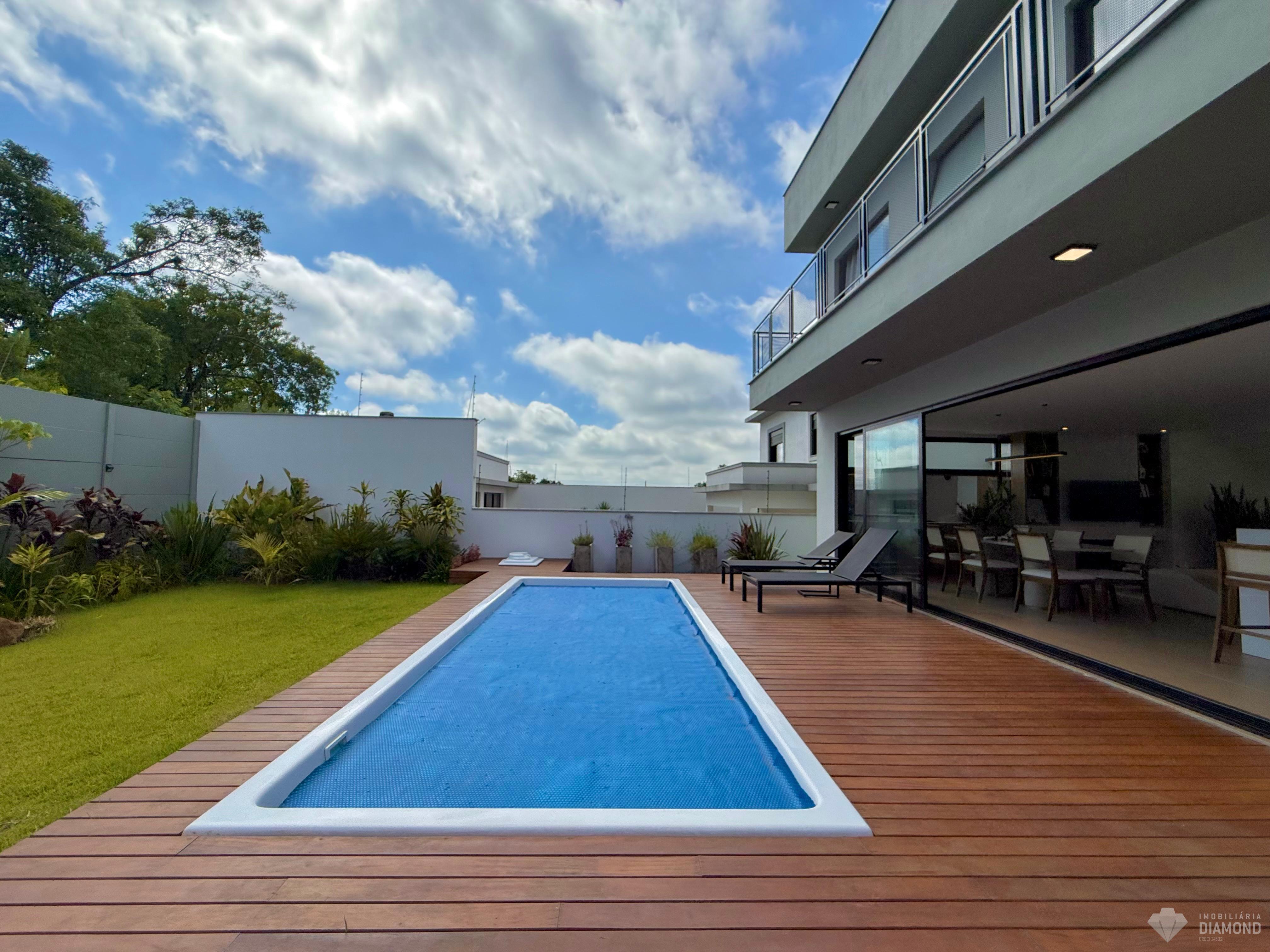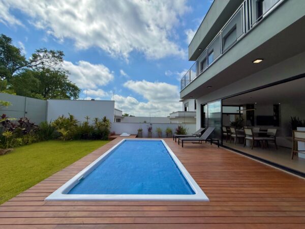 Amplo pátio com piscina.