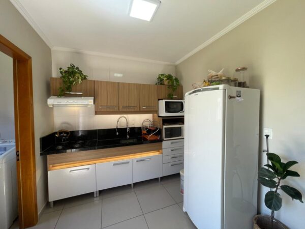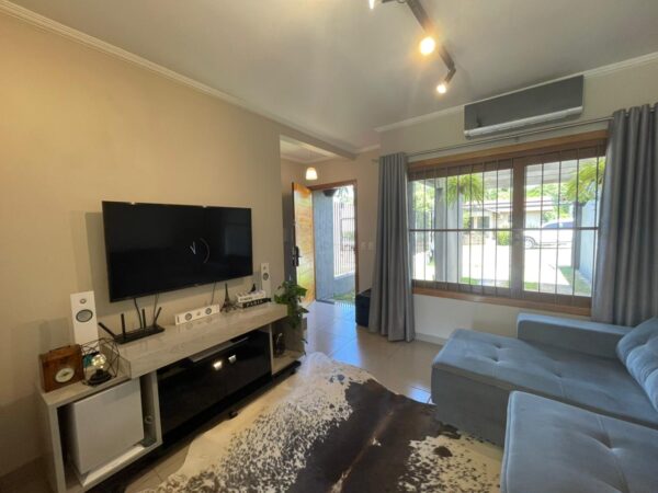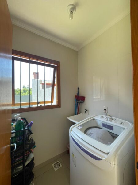 O sobrado oferece uma planta funcional com sala de estar e jantar integradas, cozinha, lavabo e lavanderia no térreo. A área de lazer conta com churrasqueira e pátio frente e fundos. No andar superior, ficam os 2 quartos e o banheiro social. Com vaga para 2 carros e ótima posição solar, é a união de praticidade e conforto.