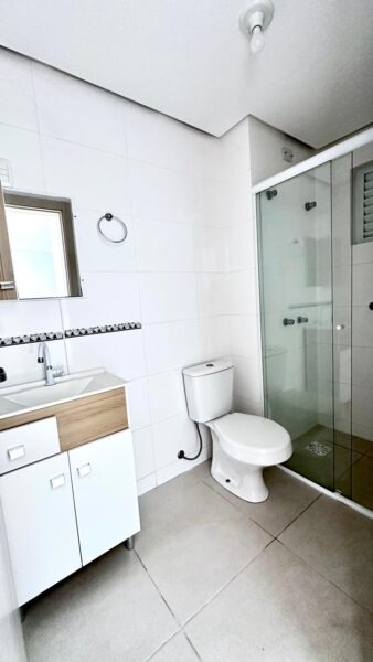 – Banheiro mobiliado com box