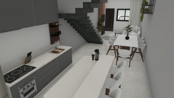 A privacidade é o destaque deste sobrado, que oferece 2 dormitórios, ambos suítes, garantindo conforto total e independência aos moradores. A área social no térreo é bem resolvida com sala de estar e sala de jantar, atendidas por um prático lavabo. A cozinha e a lavanderia completam a funcionalidade interna. Com pátios na frente e nos fundos, além de vaga para carro e boa localização, é a escolha certa para quem busca qualidade de vida.