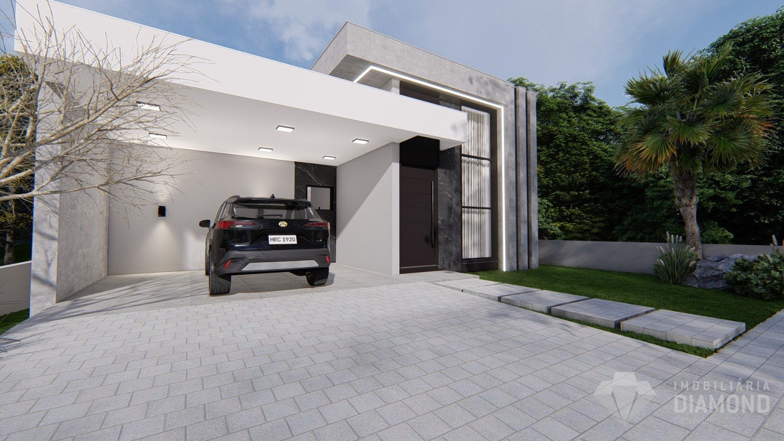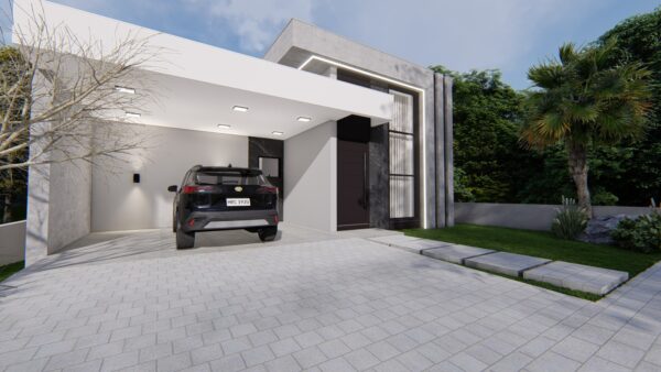 Apresenta arquitetura moderna com 141,14 m² de área construída em terreno amplo de 348,21 m²