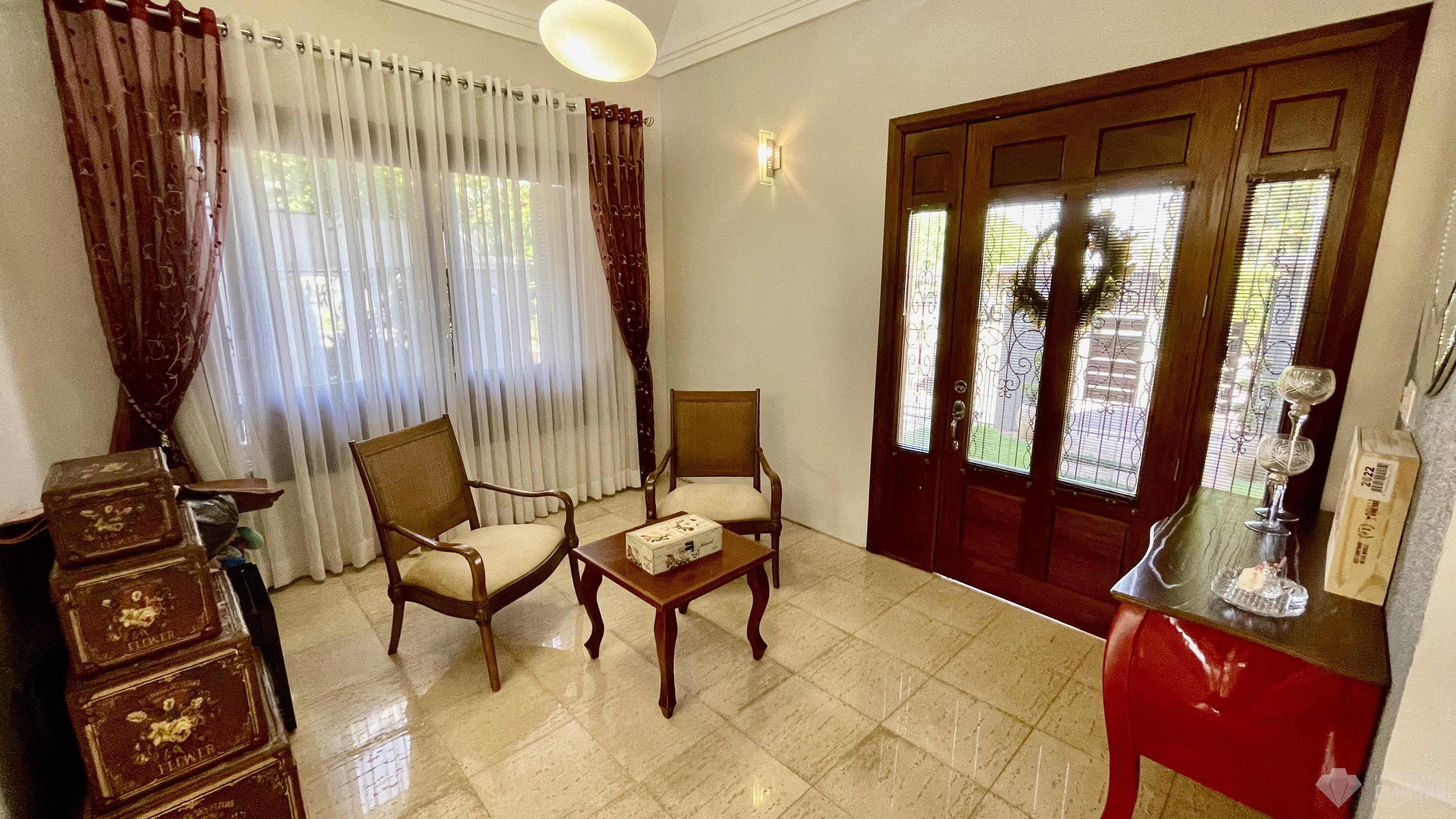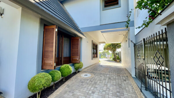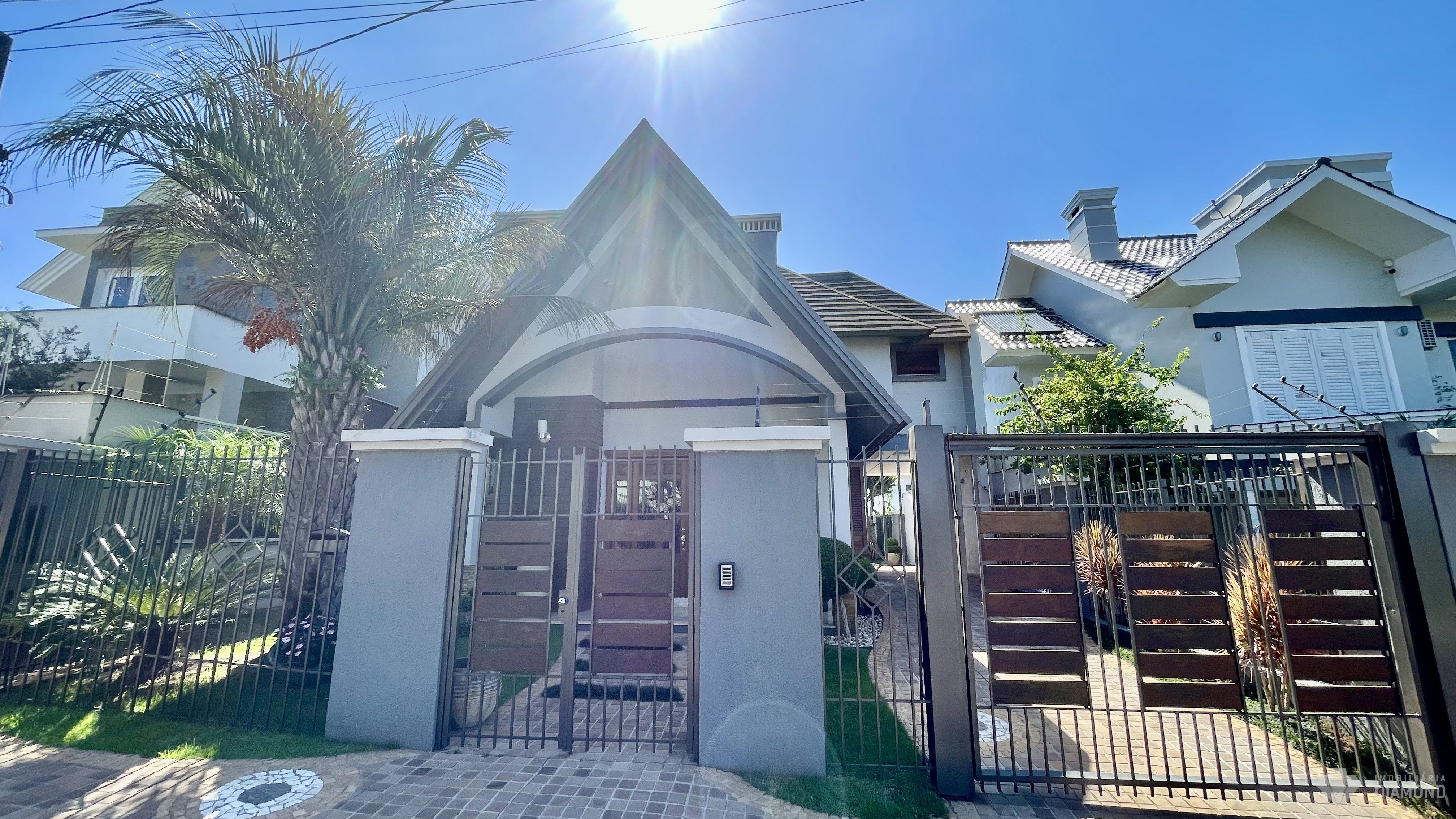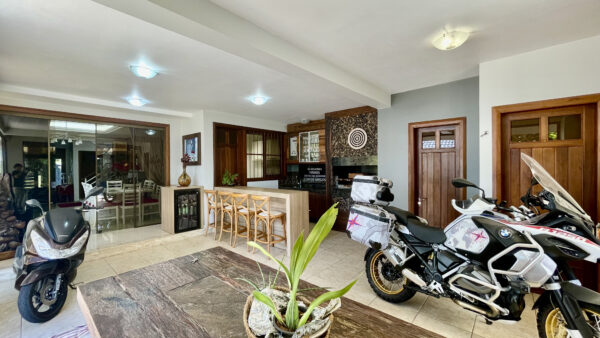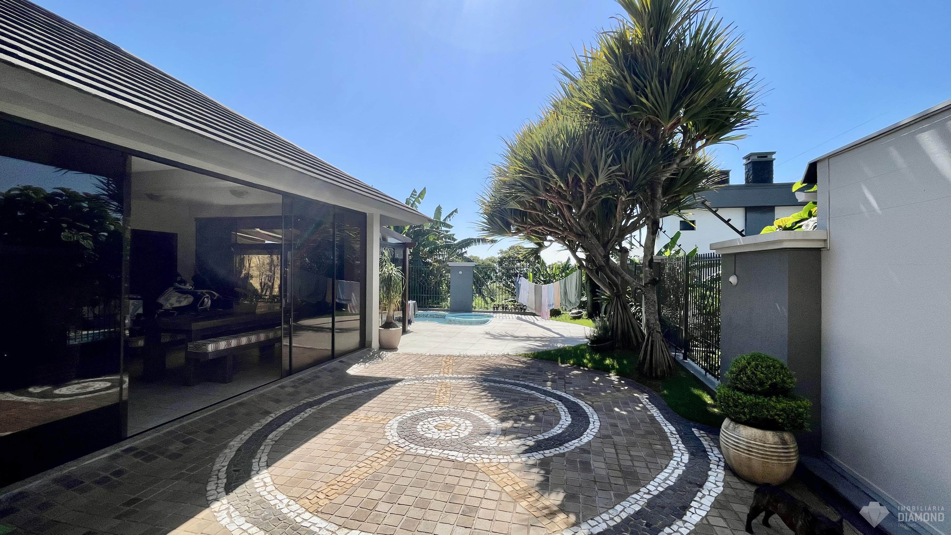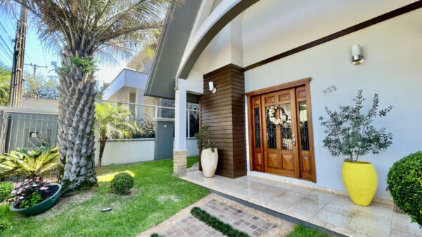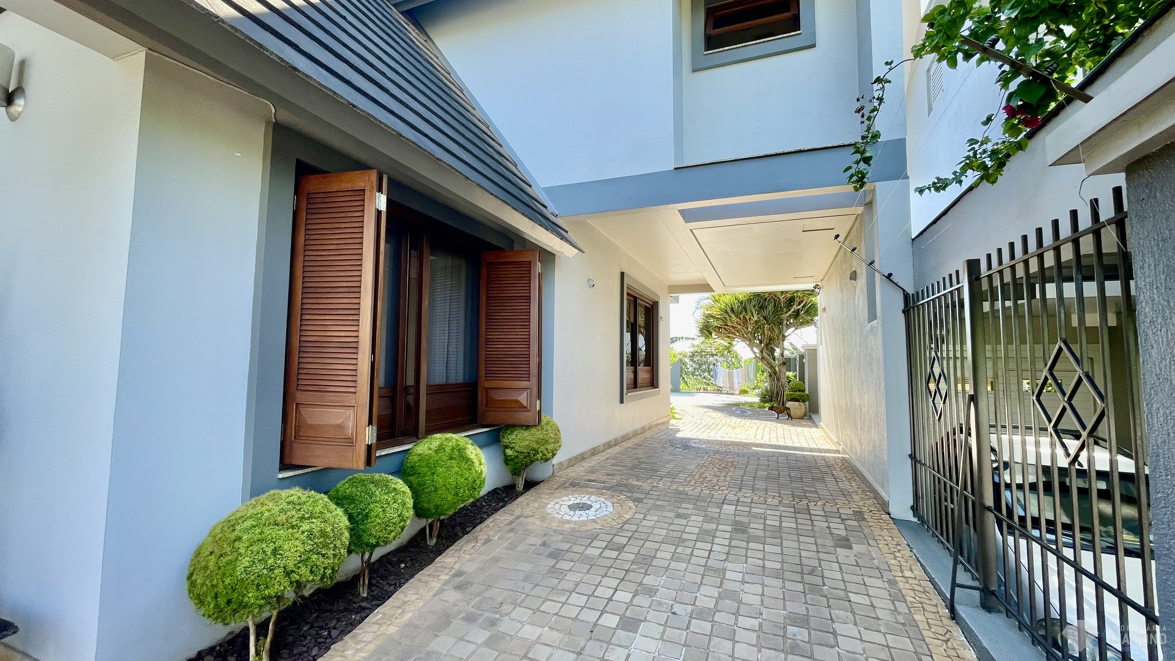Possui pátios na frente, fundos e lateral, despensa, lavanderia e garagem para até 3 carros