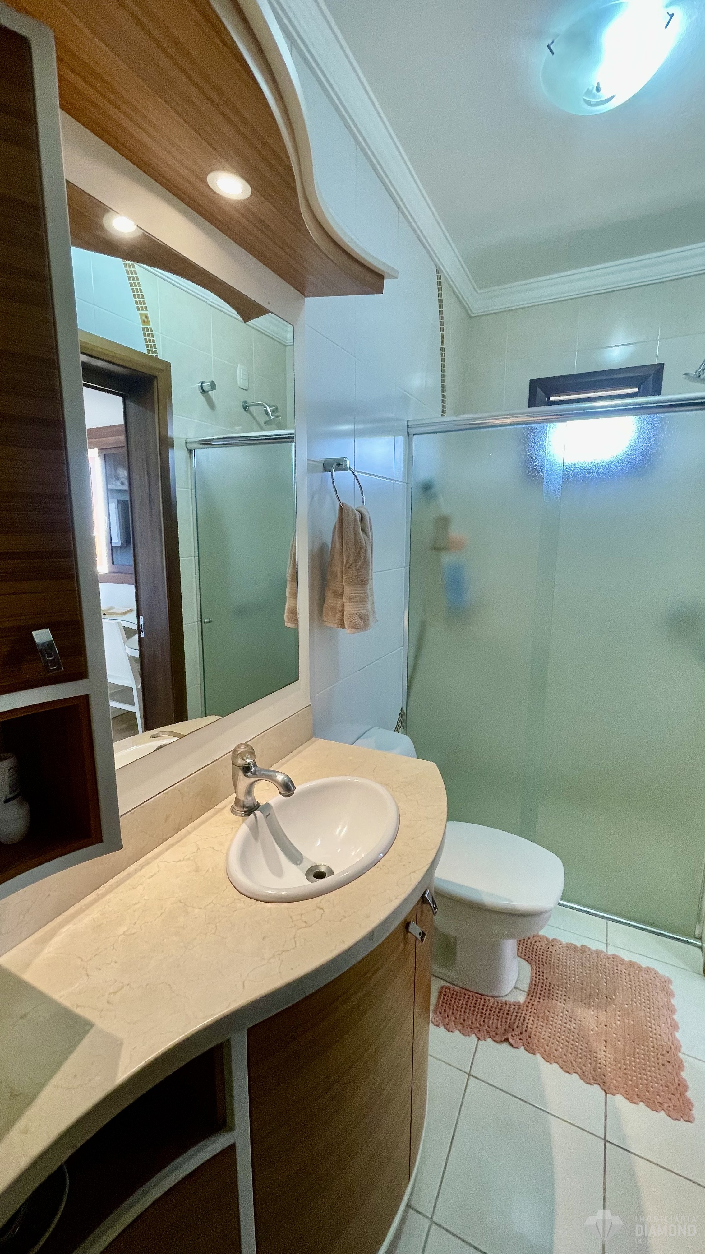 Apresenta acabamentos com esquadrias em madeira nobre, água quente e estrutura semi mobiliada