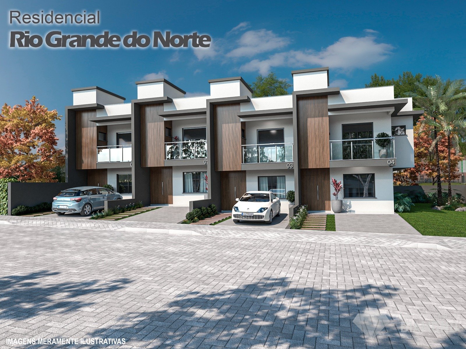 • Construído em alvenaria de tijolo maciço, destacando-se pela porta de entrada ripada amadeirada e aberturas em alumínio preto